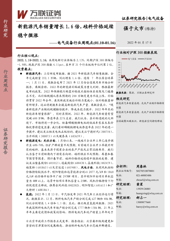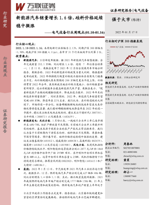 【万联证券】【20220117】电气设备行业周观点:新能源汽车销量增长1.6倍,硅料价格延续稳中微涨-13页