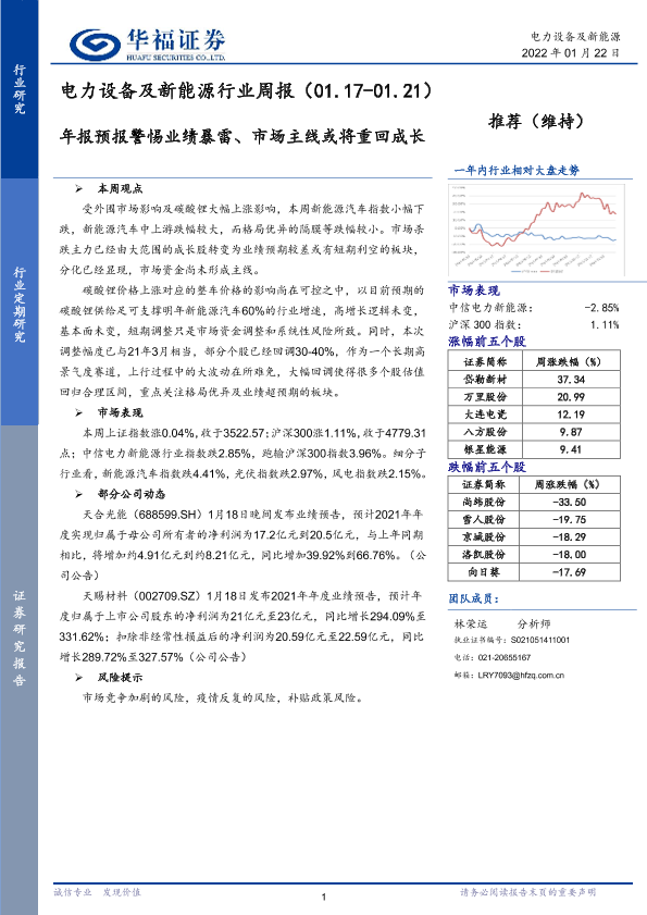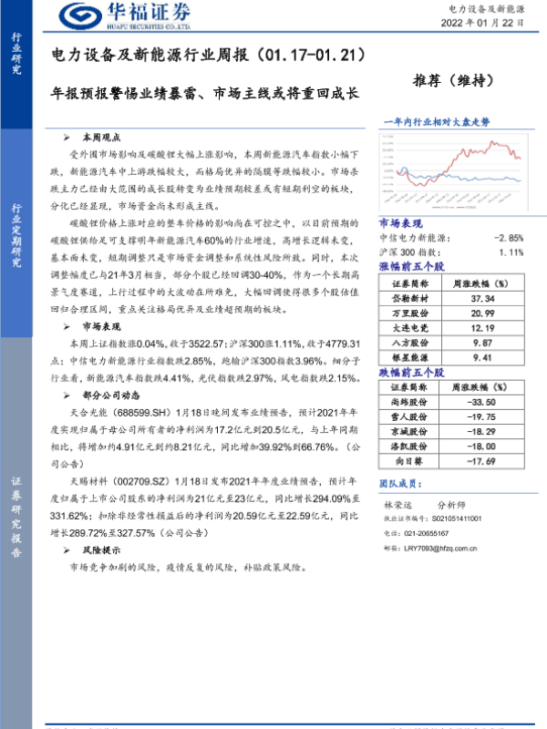 【华福证券】【20220122】电力设备及新能源行业周报:年报预报警惕业绩暴雷、市场主线或将重回成长-7页