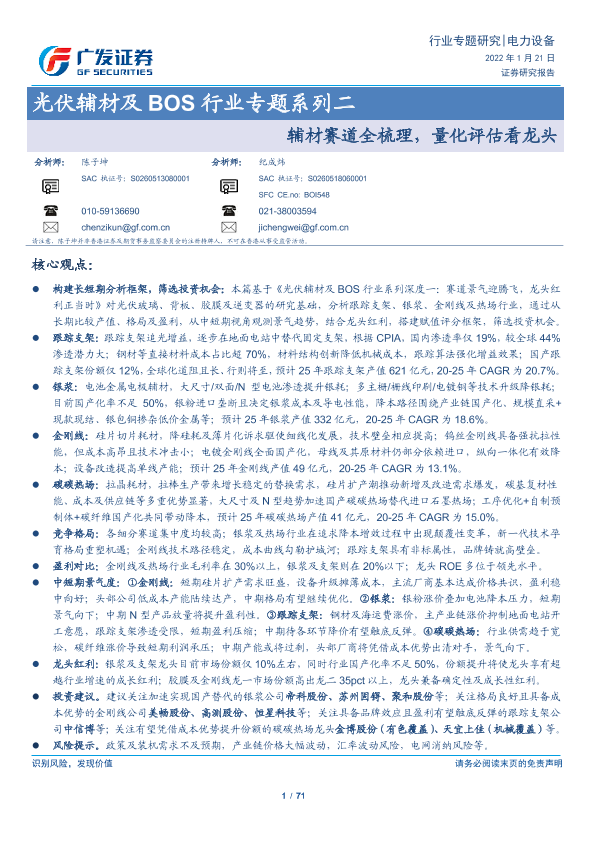 【广发证券】【20220121】光伏辅材及BOS行业专题系列二:辅材赛道全梳理,量化评估看龙头-71页