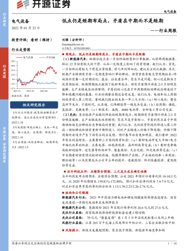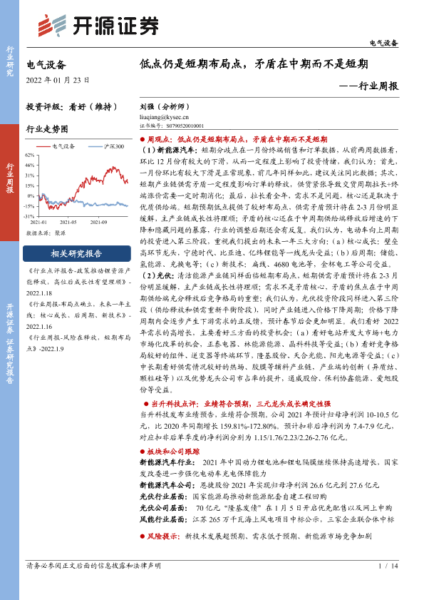 【开源证券】【20220123】20220123-开源证券-电气设备行业周报:低点仍是短期布局点,矛盾在中期而不是短期-14页