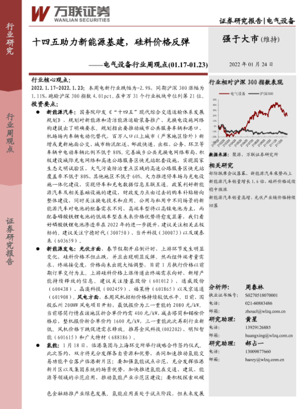 【万联证券】【20220124】十四五助力新能源基建,硅料价格反弹-13页