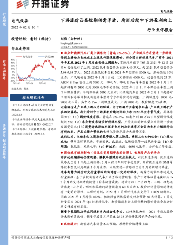 【开源证券】【20220210】电气设备行业点评报告:下游涨价凸显短期供需矛盾,看好后续中下游盈利向上-3页