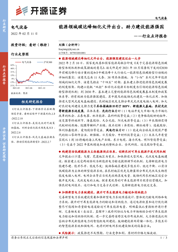 【开源证券】【20220211】电气设备行业点评报告:能源领域碳达峰细化文件出台,助力建设能源强国-3页