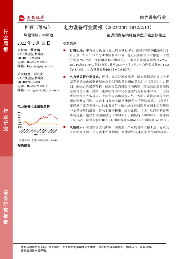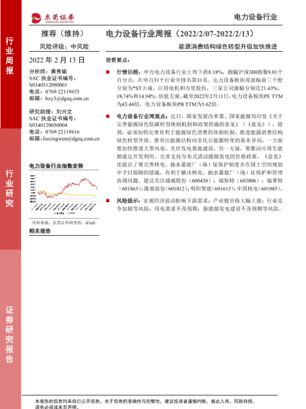 【东莞证券】【20220213】电力设备行业周报:能源消费结构绿色转型升级加快推进-13页