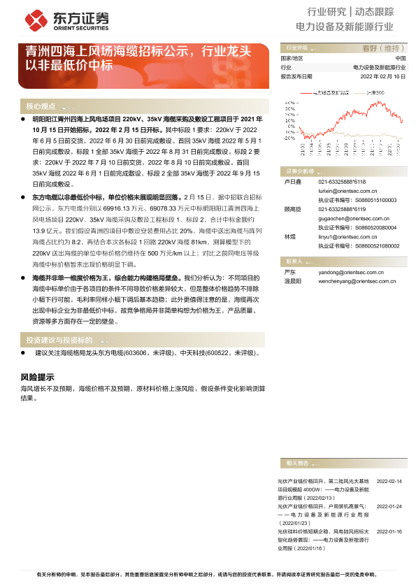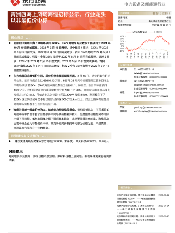 【东方证券】【20220216】电力设备及新能源行业动态跟踪:青洲四海上风场海缆招标公示,行业龙头以非最低价中标-6页