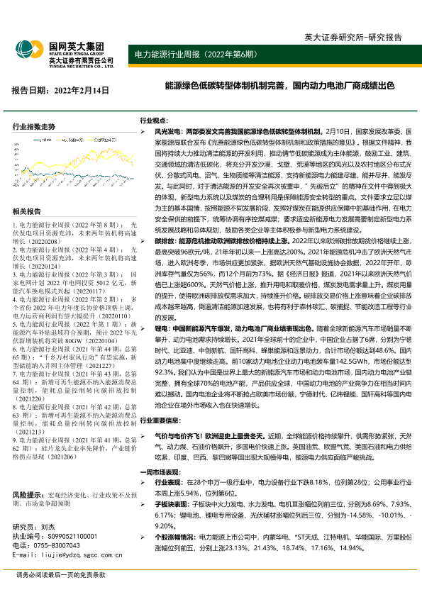 【英大证券】【20220214】电力能源行业周报(2022年第6期):能源绿色低碳转型体制机制完善,国内动力电池厂商成绩出色-29页