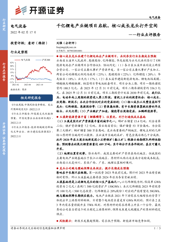 【开源证券】【20220217】电气设备行业点评报告:千亿锂电产业链项目启航,核心成长龙头打开空间-3页