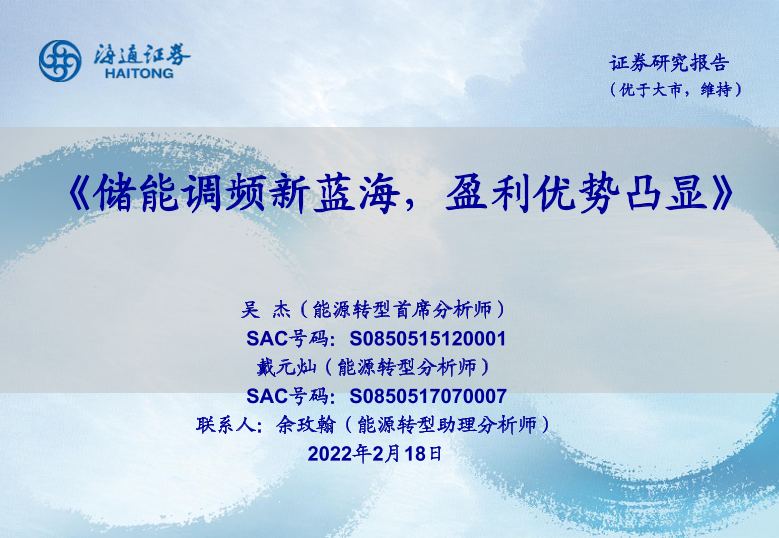 【海通证券】【20220218】储能调频新蓝海,盈利优势凸显-34页