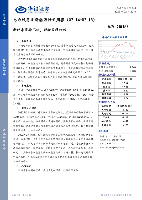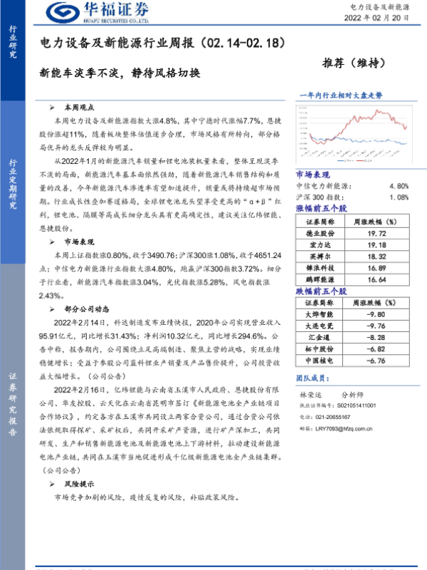【华福证券】【20220220】20220220-华福证券-电力设备及新能源行业周报:新能车淡季不淡,静待风格切换-7页