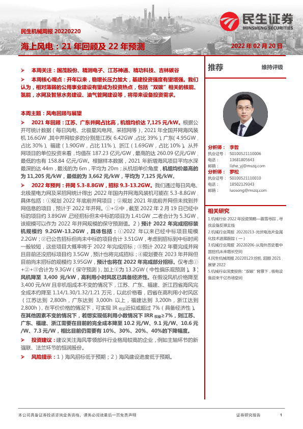【民生证券】【20220220】民生机械周报:海上风电:21年回顾及22年预测-12页
