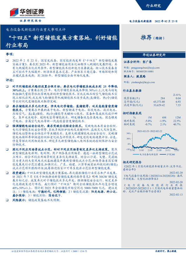 【华创证券】【20220223】电力设备及新能源行业重大事项点评:“十四五”新型储能发展方案落地,利好储能行业布局-4页