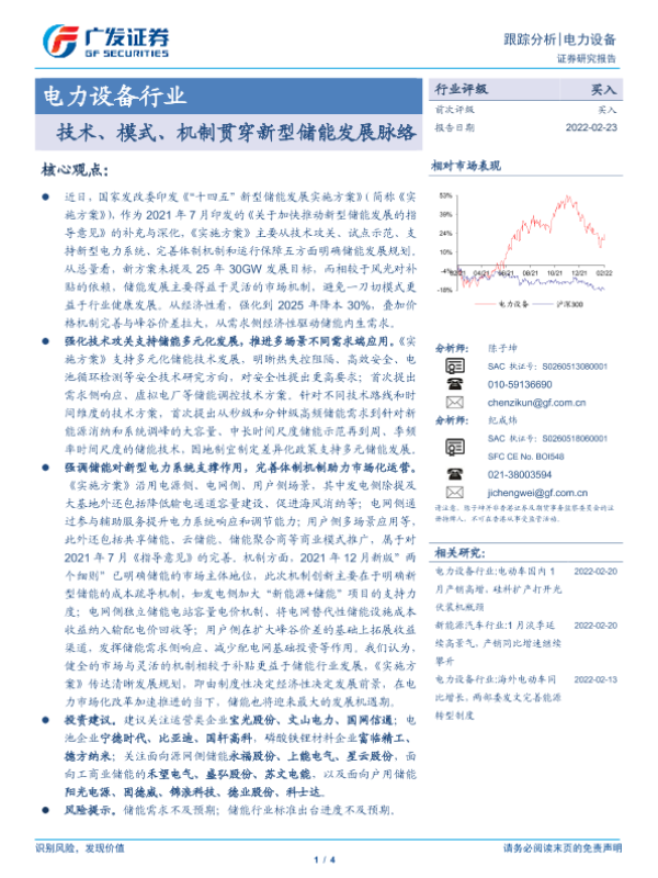 【广发证券】【20220223】电力设备行业:技术、模式、机制贯穿新型储能发展脉络-4页