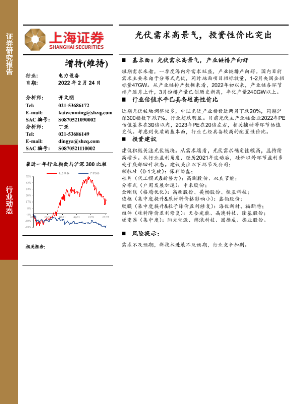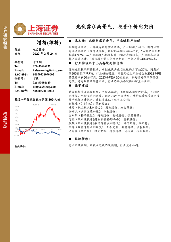 【上海证券】【20220224】电力设备:光伏需求高景气,投资性价比突出-11页