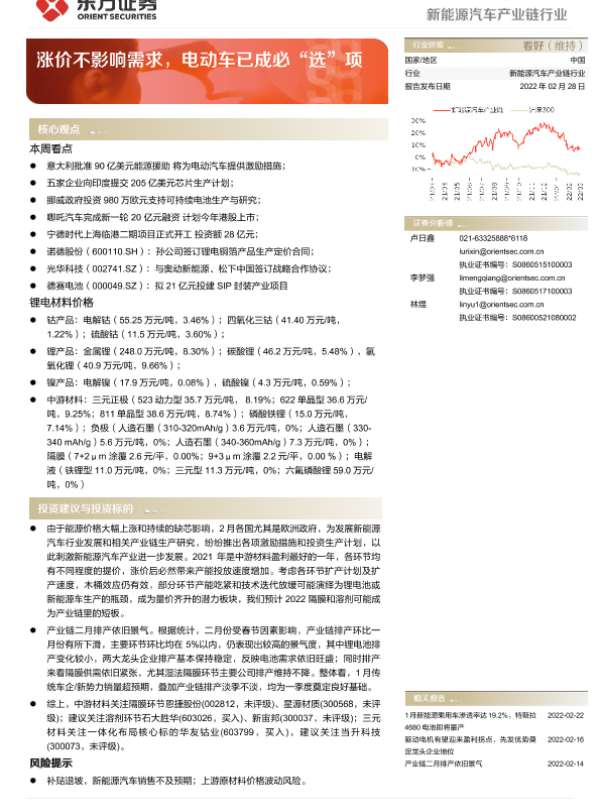 【东方证券】【20220228】新能源汽车产业链行业:涨价不影响需求,电动车已成必“选”项-28页
