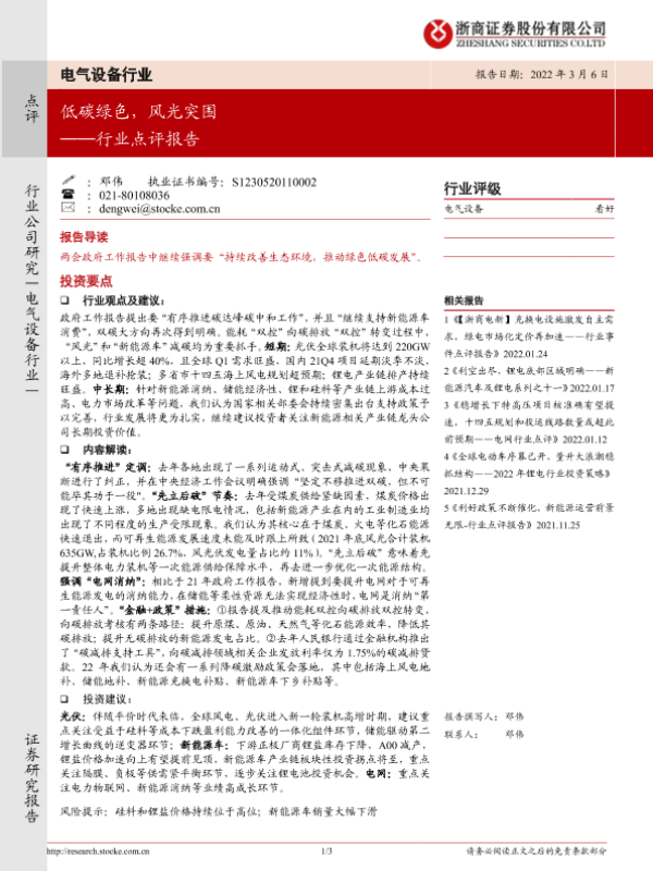 【浙商证券】【20220306】电气设备行业点评报告:低碳绿色,风光突围-3页