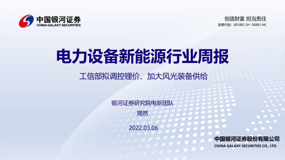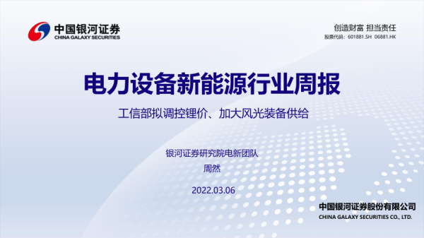【银河证券】【20220306】电力设备新能源行业周报:工信部拟调控锂价、加大风光装备供给-43页