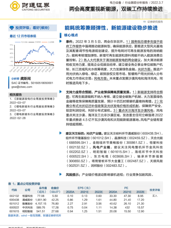 【财通证券】【20220307】电力设备行业跟踪分析报告:两会高度重视新能源,双碳工作持续推进-2页