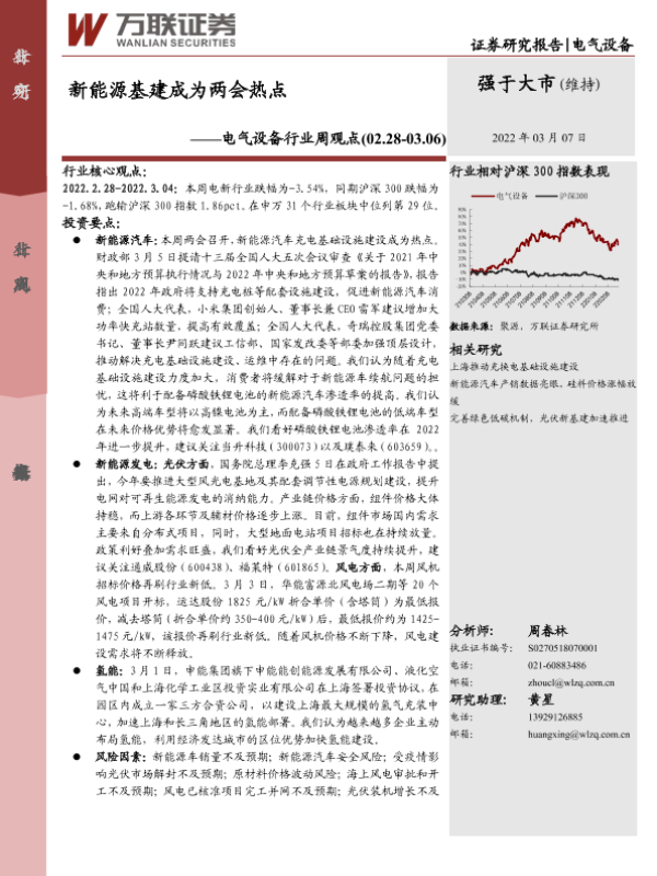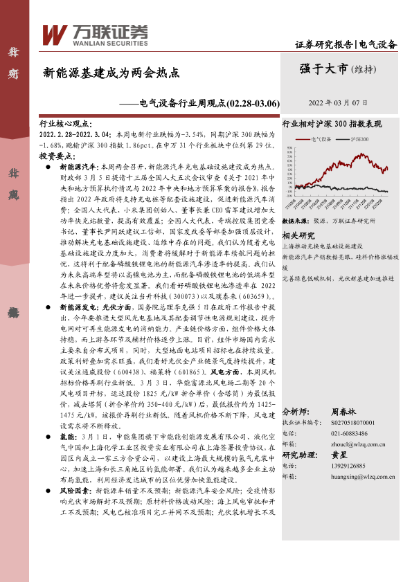 【万联证券】【20220307】电气设备行业周观点:新能源基建成为两会热点-11页