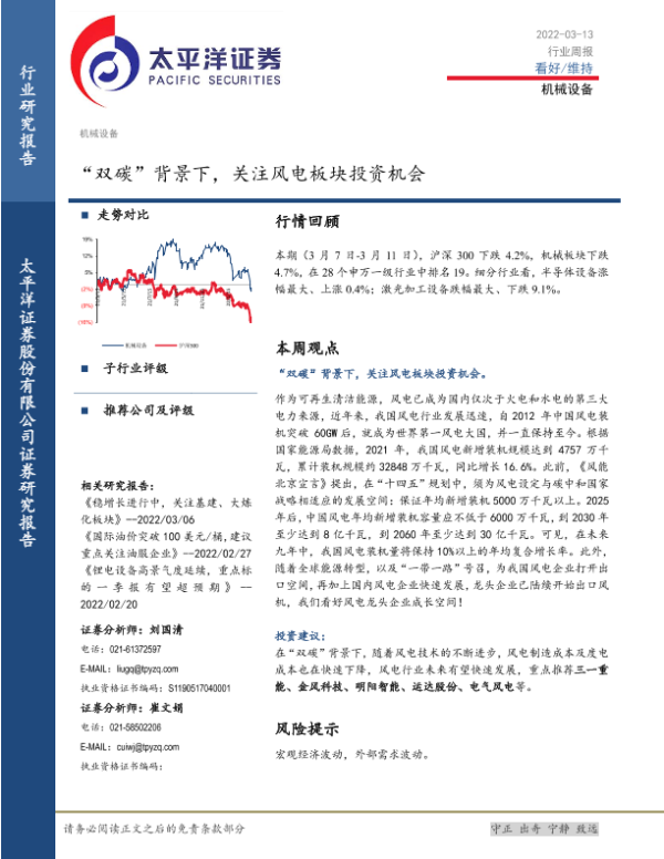 【太平洋证券】【20220313】“双碳”背景下,关注风电板块投资机会-17页