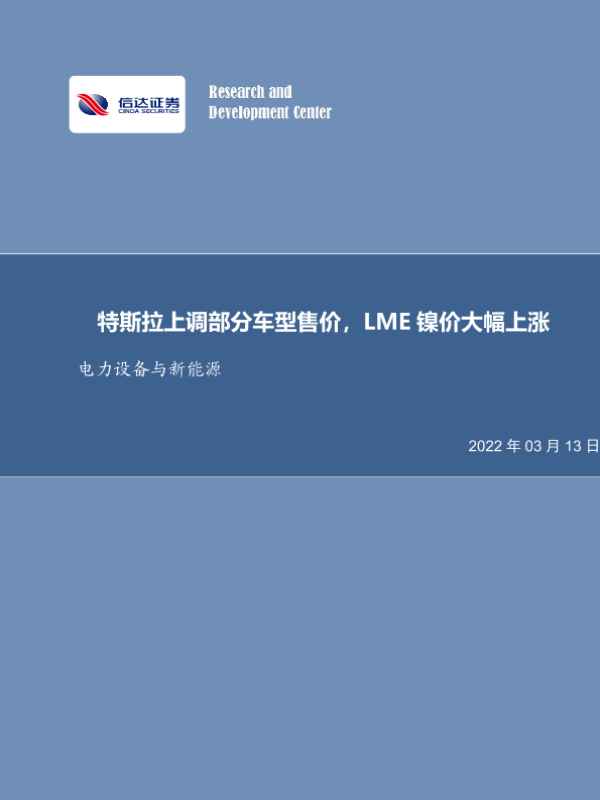 【信达证券】【20220313】20220313-信达证券-电力设备与新能源行业周报:特斯拉上调部分车型售价,LME镍价大幅上涨-7页