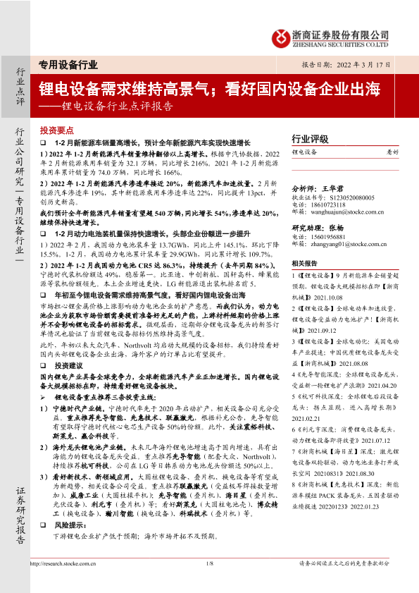 【浙商证券】【20220317】锂电设备需求维持高景气;看好国内设备企业出海-8页