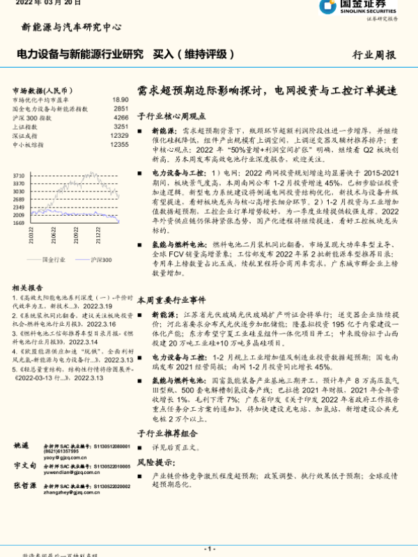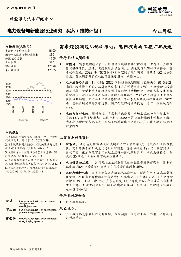 【国金证券】【20220320】电力设备与新能源行业研究:需求超预期边际影响探讨,电网投资与工控订单提速-14页