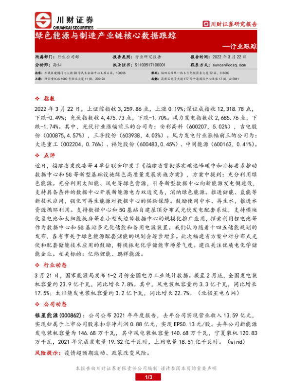 【川财证券】【20220322】绿色能源与制造产业链核心数据跟踪-3页