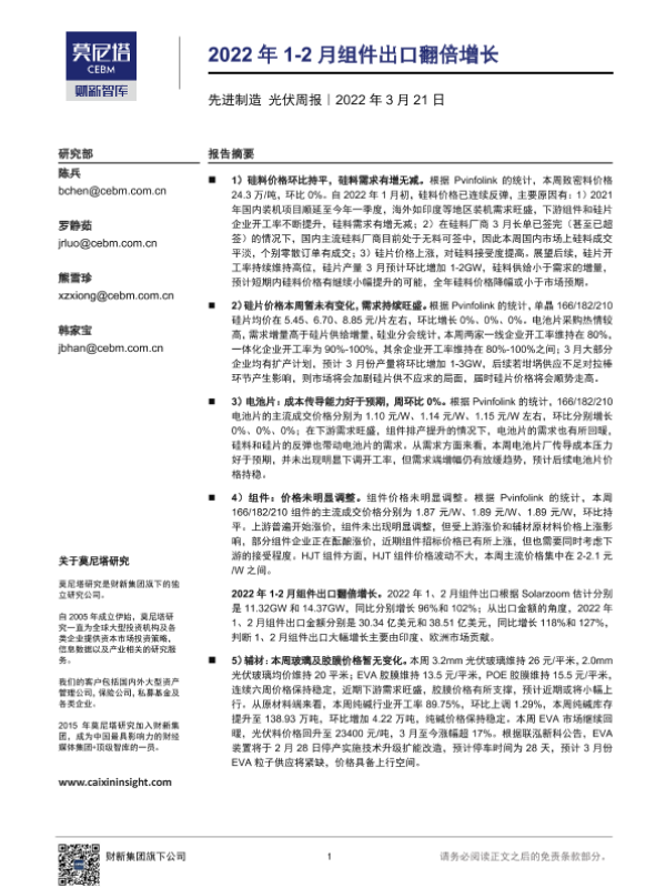 【莫尼塔研究】【20220321】2022年1-2月组件出口翻倍增长-17页