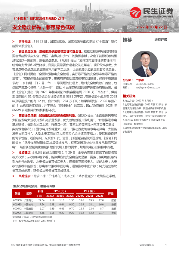 【民生证券】【20220322】《“十四五”现代能源体系规划》点评:安全稳定优先,兼顾绿色低碳-2页