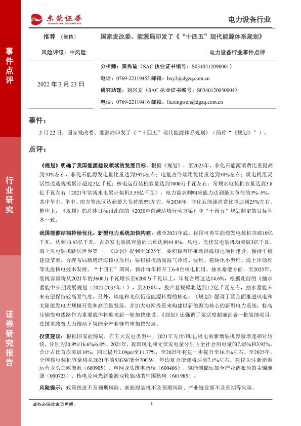 【东莞证券】【20220323】电力设备行业事件点评:国家发改委、能源局印发了《“十四五”现代能源体系规划》-2页