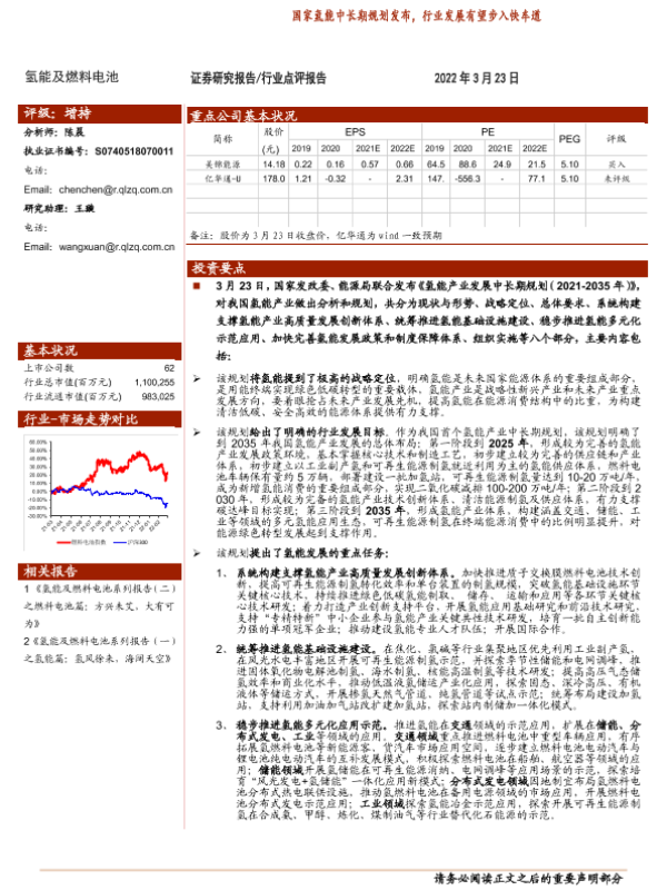 【中泰证券】【20220323】国家氢能中长期规划发布,行业发展有望步入快车道-5页