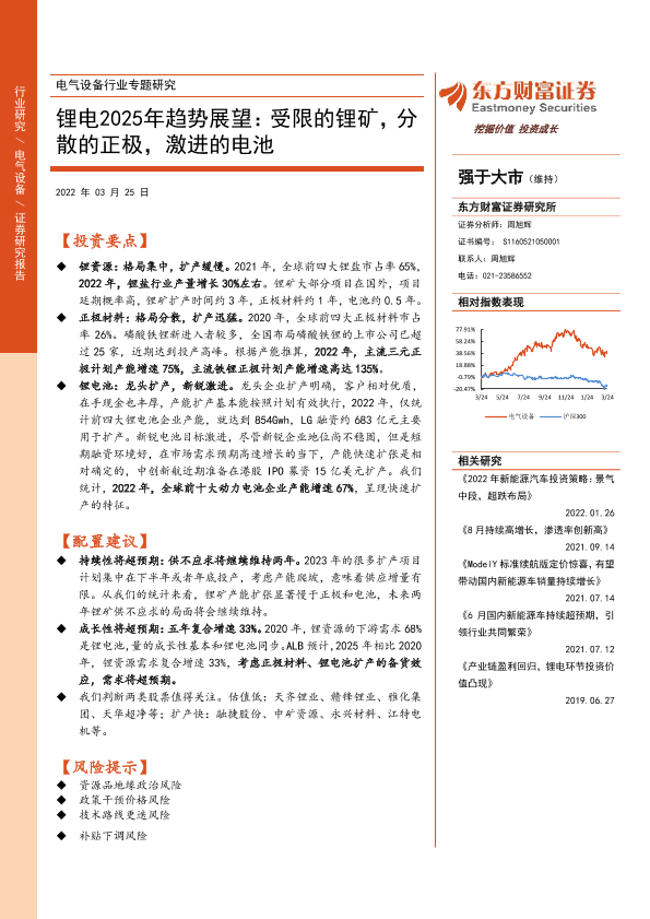 【东方财富证券】【20220325】电气设备行业专题研究:锂电2025年趋势展望:受限的锂矿,分散的正极,激进的电池-13页
