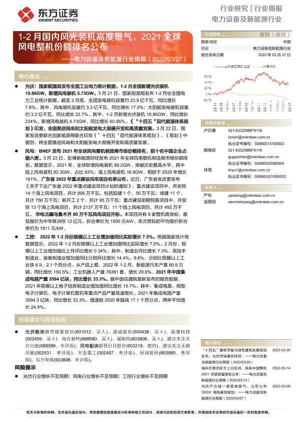 【东方证券】【20220327】电力设备及新能源行业周报:风电整机份额排名公布-16页