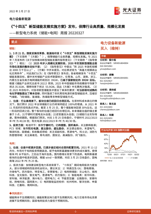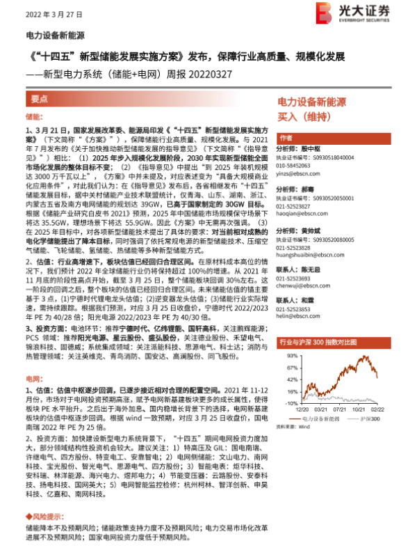 【光大证券】【20220327】20220327-光大证券-新型电力系统(储能+电网)周报:《“十四五”新型储能发展实施方案》发布,保障行业高质量、规模化发展-6页
