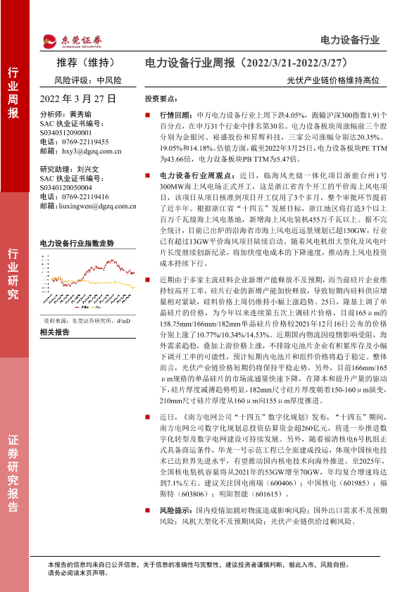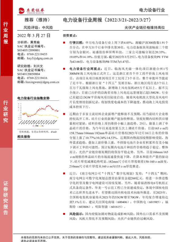 【东莞证券】【20220327】电力设备行业周报:光伏产业链价格维持高位-13页