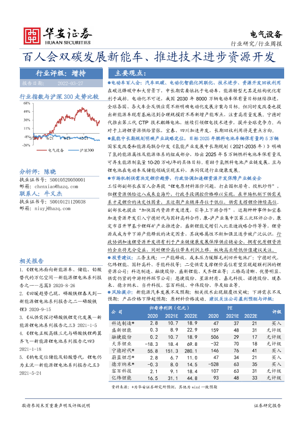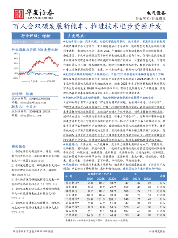 【华安证券】【20220327】电气设备行业周报:百人会双碳发展新能车、推进技术进步资源开发-23页