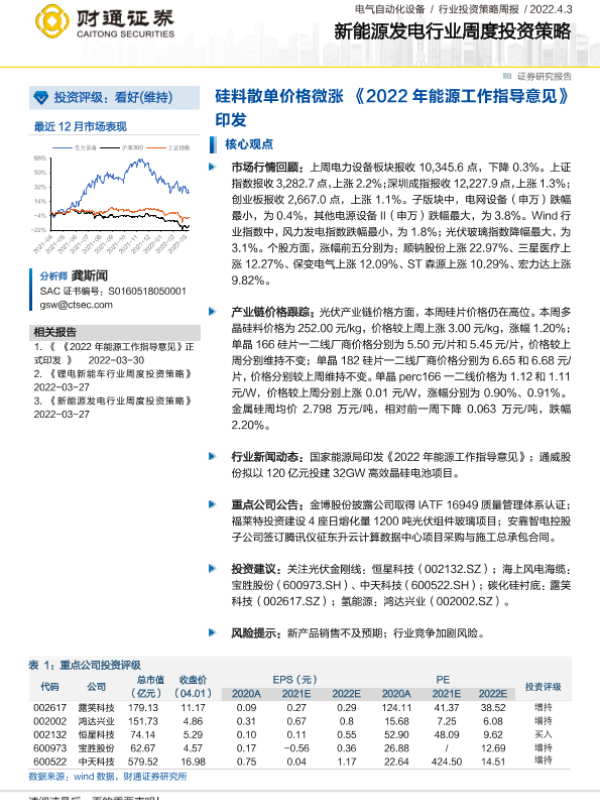 【财通证券】【20220403】20220403-财通证券-新能源发电行业周度投资策略:硅料散单价格微涨 《2022年能源工作指导意见》印发-17页
