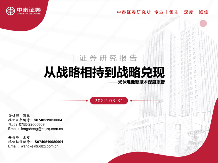 【中泰证券】【20220331】从战略相持到战略兑现——光伏电池新技术深度报告-25页