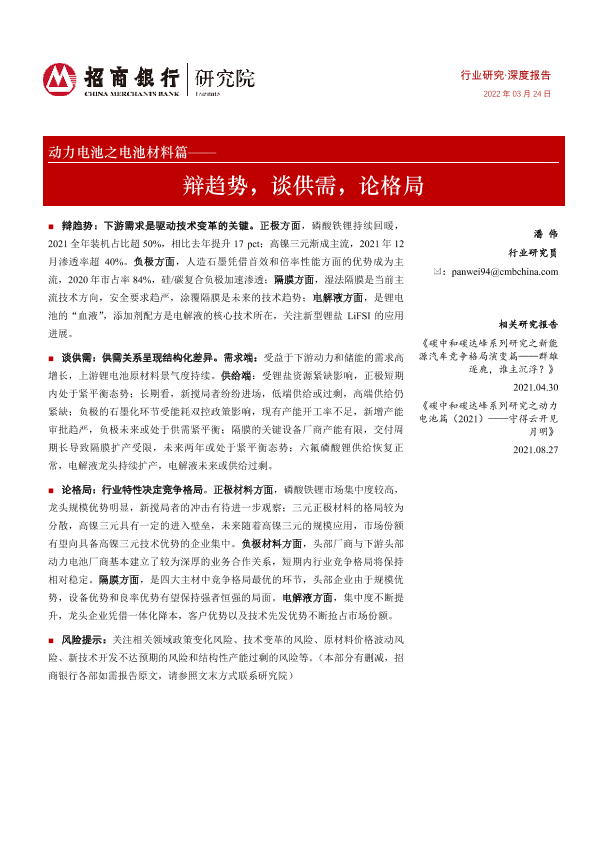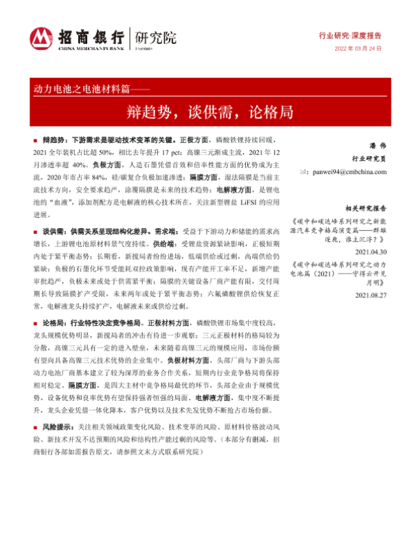 【招商银行】【20220324】动力电池之电池材料篇——辩趋势,谈供需,论格局-31页