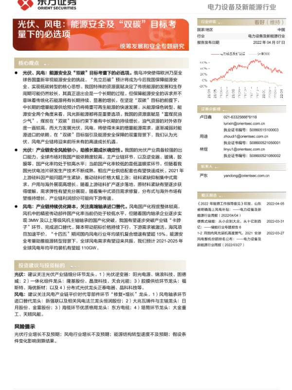 【东方证券】【20220407】电力设备及新能源行业深度报告:统筹发展和安全专题研究-光伏、风电:能源安全及“双碳”目标考量下的必选项-22页
