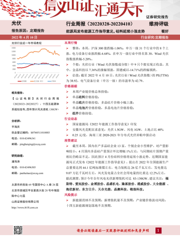 【山西证券】【20220410】20220410-山西证券-光伏行业周报:能源局发布能源工作指导意见,硅料延续小涨走势-11页