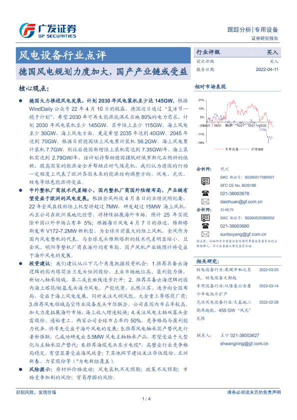 【广发证券】【20220411】风电设备行业点评:德国风电规划力度加大,国产产业链或受益-4页