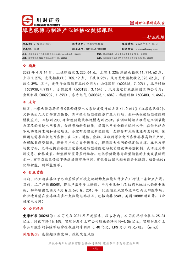 【川财证券】【20220414】绿色能源与制造产业链核心数据跟踪-3页