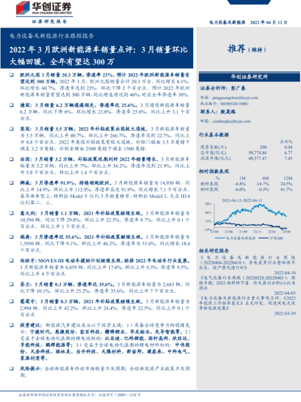 【华创证券】【20220412】2022年3月欧洲新能源车销量点评:3月销量环比大幅回暖,全年有望达300万-17页