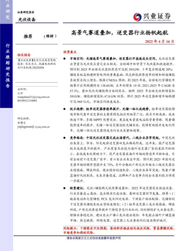 【兴业证券】【20220416】高景气赛道叠加,逆变器行业扬帆起航-23页