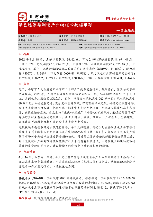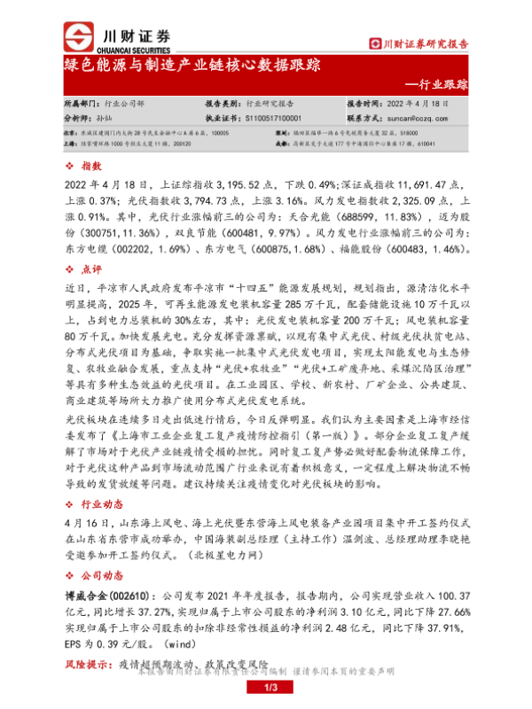 【川财证券】【20220418】绿色能源与制造产业链核心数据跟踪-3页