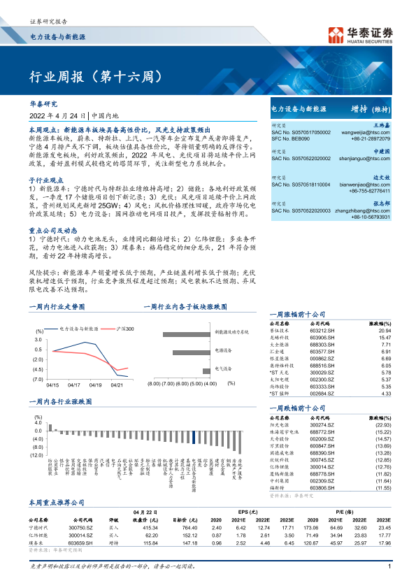 【华泰证券】【20220424】电力设备与新能源行业周报(第十六周)-24页