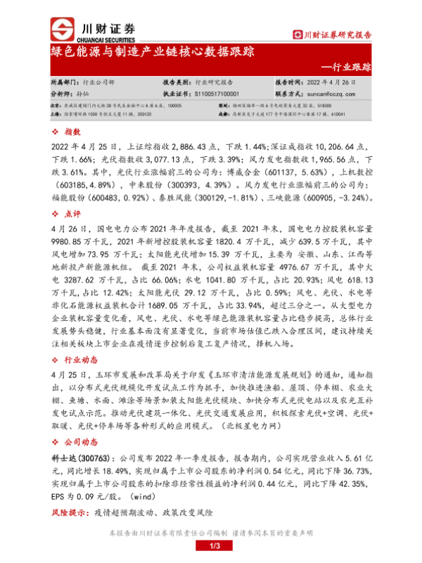 【川财证券】【20220426】绿色能源与制造产业链核心数据跟踪-3页