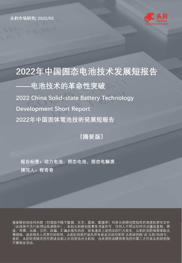 【头豹研究院】【20220428】2022年中国固态电池技术发展短报告——电池技术的革命性突破(摘要版)-9页