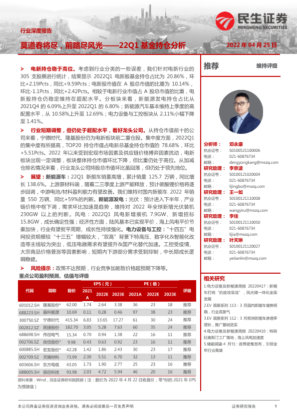 光伏风电 市场展望 新能源车 电力设备 电新持仓
